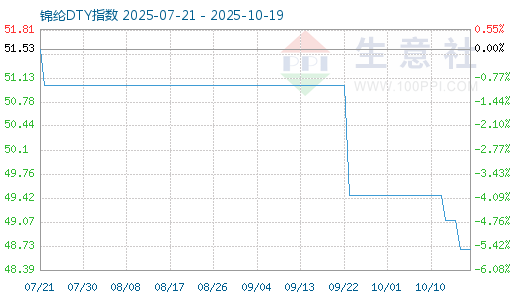 10月17日生意社锦纶DTY指数为48.68,与昨日持平,创下周期内的历史新低,较2013年03月17日最高点101.56点下降了52.07%。(注:周期指2012-10-01至今)
